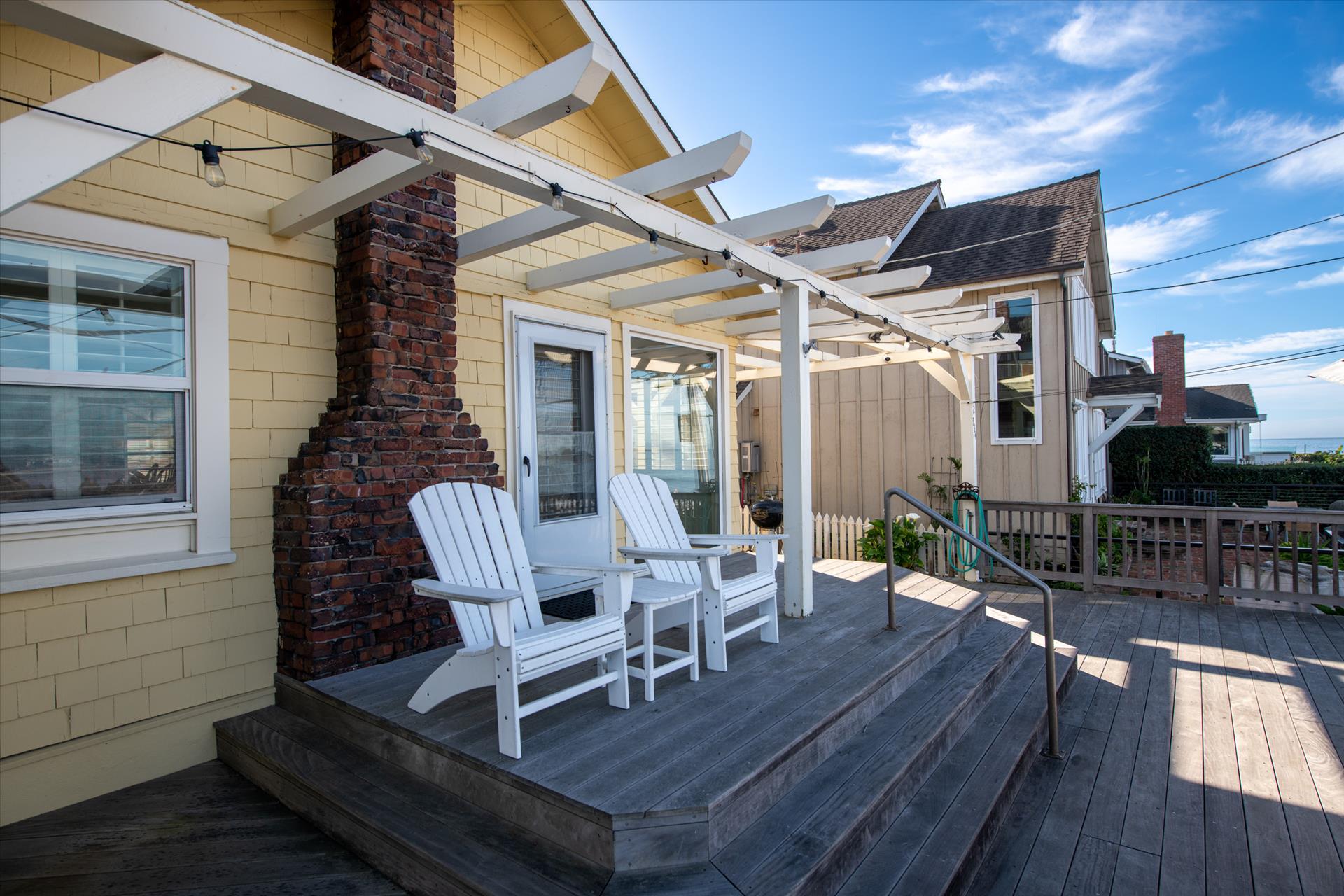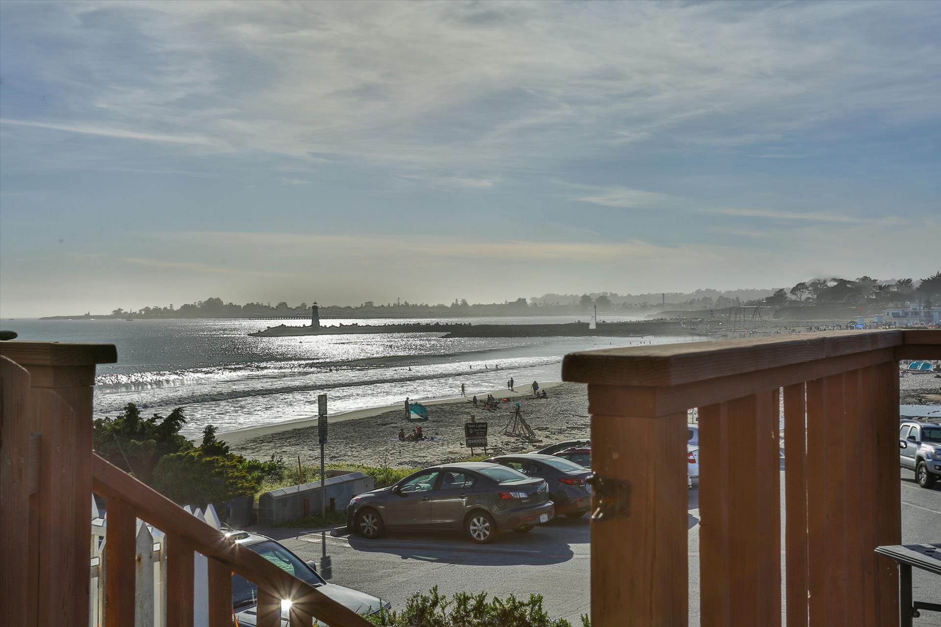 Located at 2934 East Cliff Drive, the house sleeps 6 and is just steps from the beach. It has a big deck with a beautiful view of Twin Lakes State Beach. The house has a washer and dryer. No pets and no smoking.